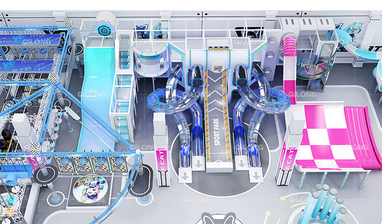 The Modern Indoor Playground System with its dual-tube slide structure is designed to be a stunning centerpiece attraction. It can be installed as an individual area in various venues such as shopping malls, family entertainment centers, amusement parks, and resorts. The transparent tubes provide a thrilling yet secure experience, while the cushioned landing zone ensures maximum safety for all riders. The LED lighting effects are fully customizable to match your venue’s theme.