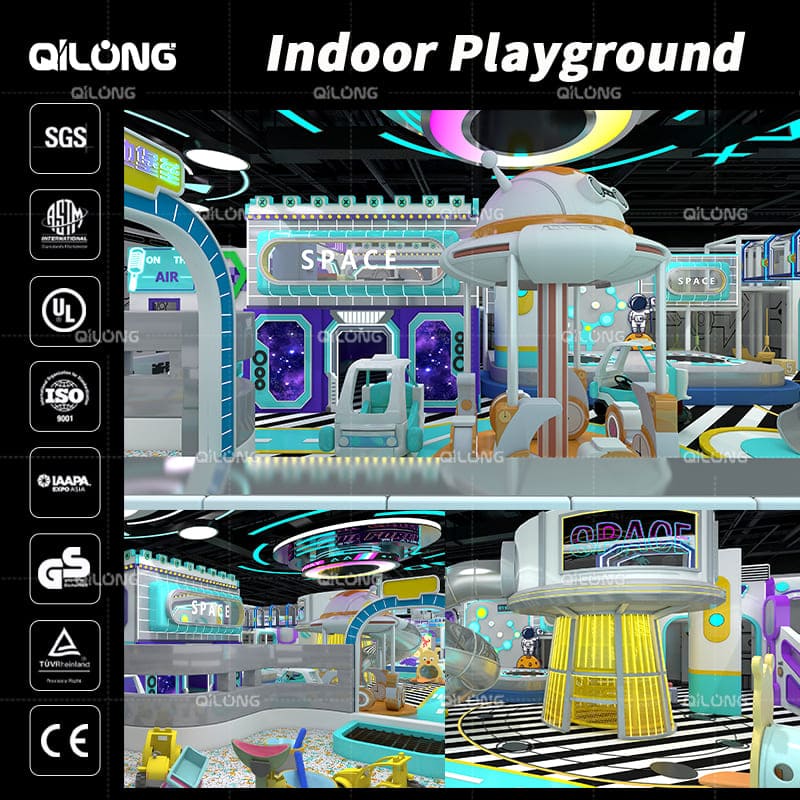 This vibrant indoor playground boasts a futuristic, space - themed design with bold colors. It features a massive ball pit, spiral slides, a spinning carousel.This indoor playgrounds offer a distinctive and futuristic experience, providing a chance to unleash creativity. Parents are drawn not just to giving their kids a fun - filled time but also to capturing unforgettable moments amid the captivating, space - themed structures.